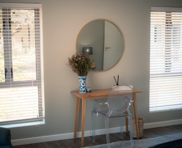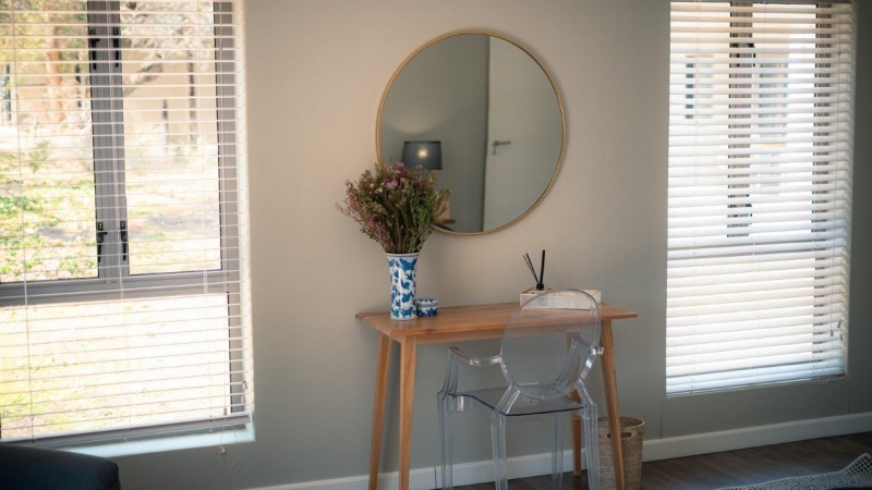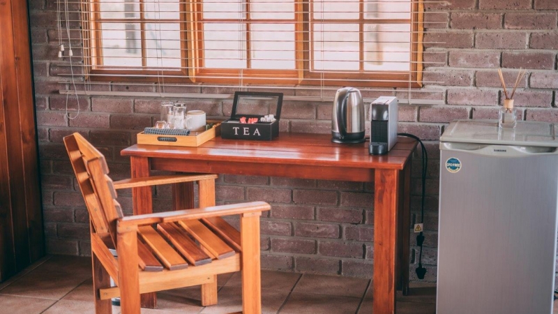 - One chalet includes a larger lounge and kitchenette