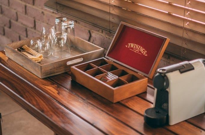 - Each with Nespresso machine and bar fridge